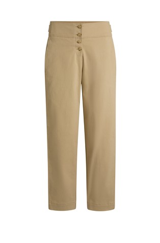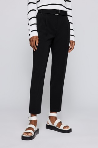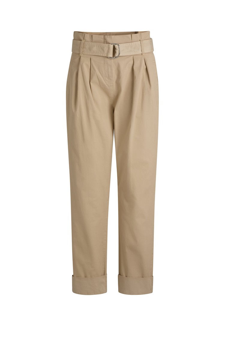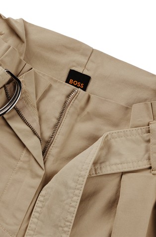 Ležerne hlače iz kolekcije BOSS odlikuju se elegantnim dodirom jer su završene ženstveno nabranim strukom i uvrnutim rubom na završetku nogavica. Odjeća je djelomično izrađena od organskog pamuka. Ekološki standardi ne dopuštaju korištenje sintetičkih gnojiva, pesticida ili genetski modificiranog sjemena.