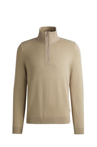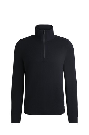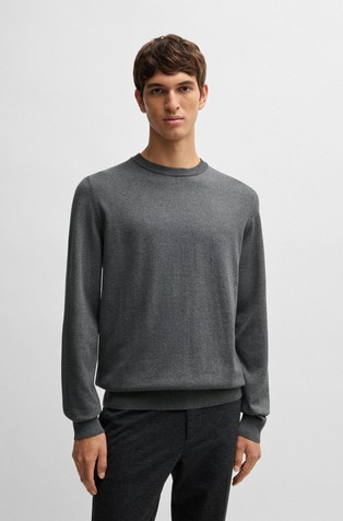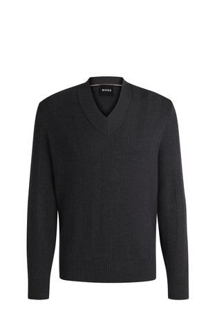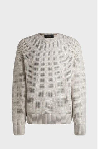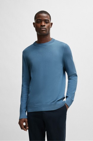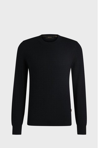 Luksuzni pulover iz kolekcije BOSS, izrađen od strukturiranog pletiva s rebrasto pletenim obrubima. Model izrađen je od meke svilene pređe.