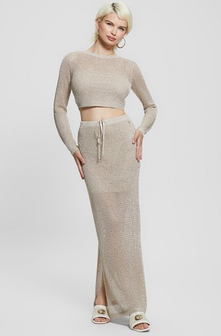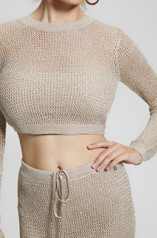 Mrežasto pleten pulover sa šljokicama