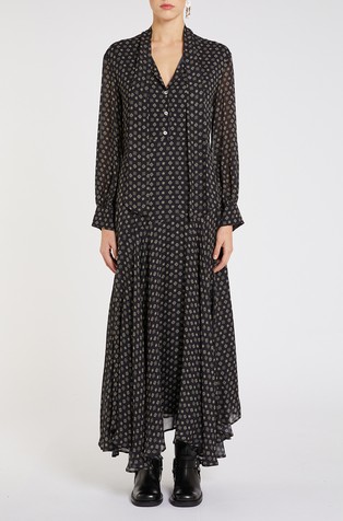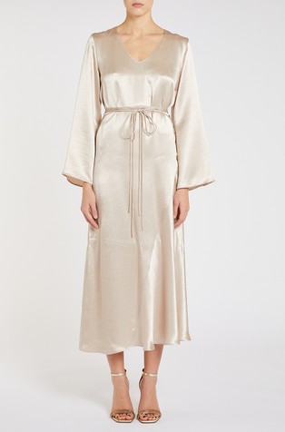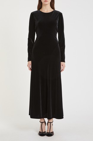 Duga haljina s vezom i umetcima od čipke