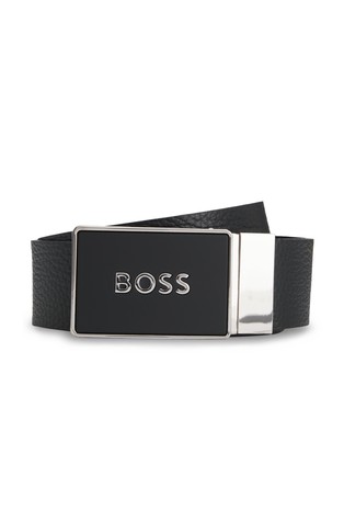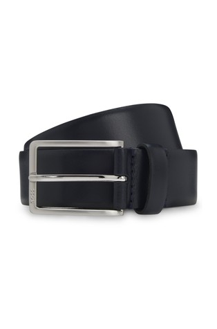 A contemporary belt by BOSS, crafted in smooth Italian leather with a logo-engraved pin buckle in polished hardware.