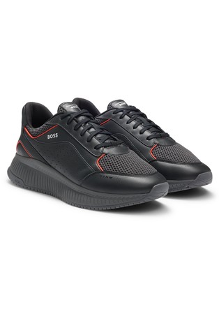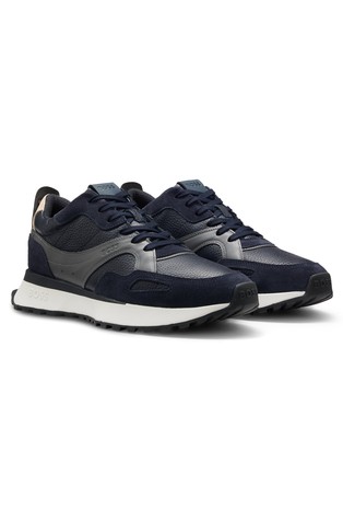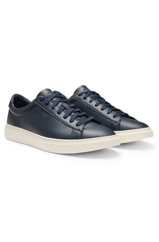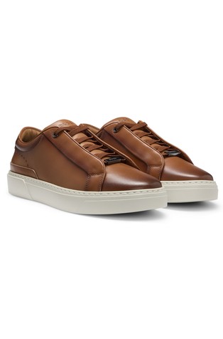 Polished goat leather trainers by BOSS are featuring a lace-up closure and thicker rubber sole.