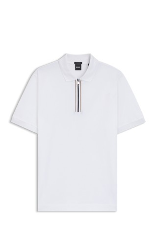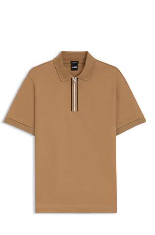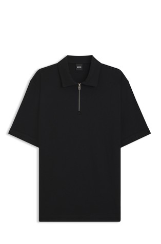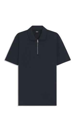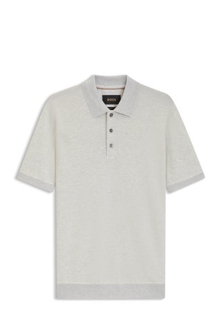 Regular-fit polo sweater with short sleeves by BOSS Menswear, crafted in a linen blend with accent tipping and a zipped placket.