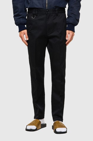 Hidden snap closure and zip fly.