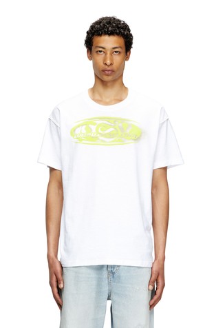 This men's T-shirt is made from cotton jersey that, due to the nature of the yarn, has a slightly textured 'raw' feel and a vintage look. Cut for a regular fit, it's emblazoned with a distorted graphic featuring an amalgamation of a photographic print and Diesel's iconic logo – the same logo is used as a tiny accent on the back.