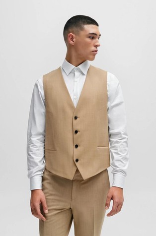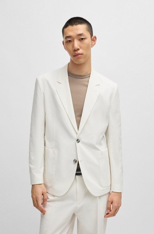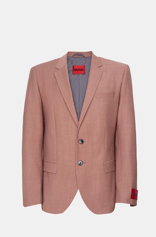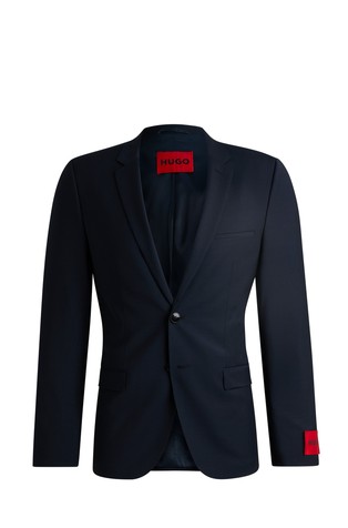 Outstanding jacket by HUGO Menswear is cut to a defined fit in performance-stretch tropical cloth blended with wool. It is featuring stud details on the lapels.