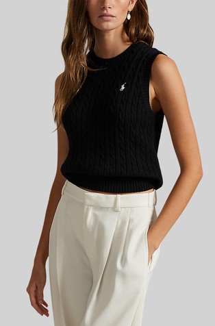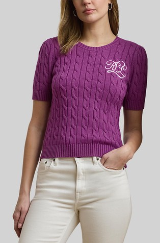 Crafted with combed cotton for a soft hand, this piece unites a timeless Polo shirt silhouette with the comfort of a cable-knit sweater. Lauren's signature embroidered logo and LRL-engraved buttons complete the look.