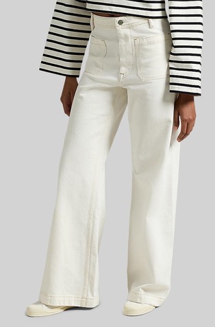 Zip fly with a signature buttoned closure.