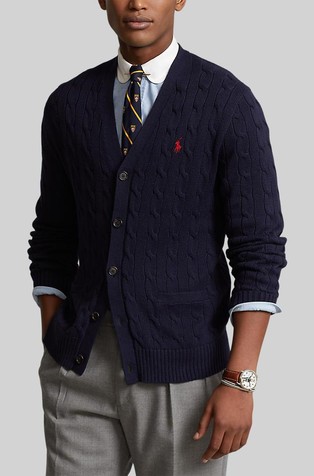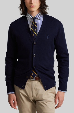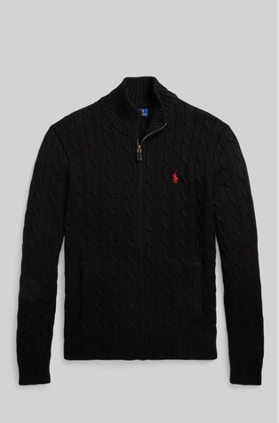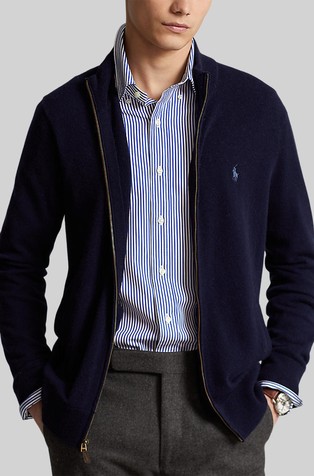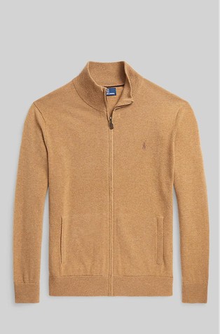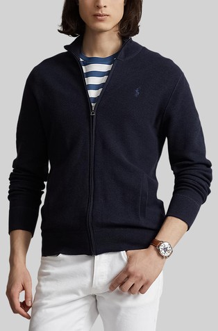 This full-zip sweater is knit with soft combed cotton and accented with a contrasting hue at the interior neck. Ralph Lauren partners with Better Cotton to improve cotton farming globally.