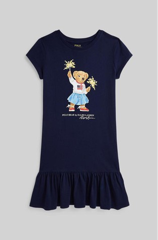 On this cotton jersey dress, Ralph's beloved Polo Bear wears a signature Parisian-inspired look.