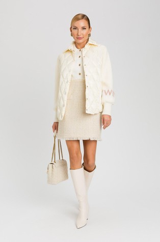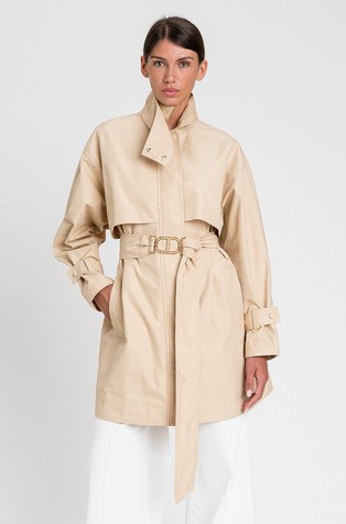 Urban femininity: smooth leather effect biker jacket with shirt collar and maxi front pockets. A great piece that will go with many pieces in your wardrobe.