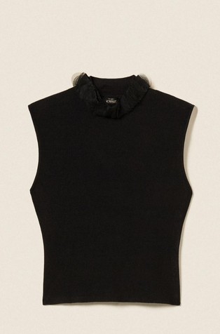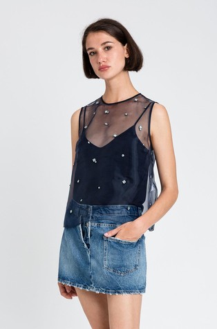Light viscose satin top you can wear in countless looks. Under jackets and cardigans in transitional looks and on its own later on in the season.