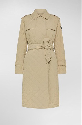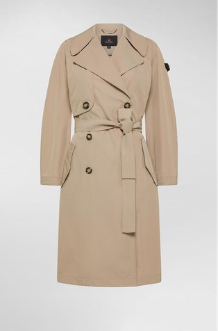 • Water-repellent stretch cotton satin trench coat