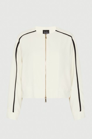 • Georgette blouson jacket with knit trims