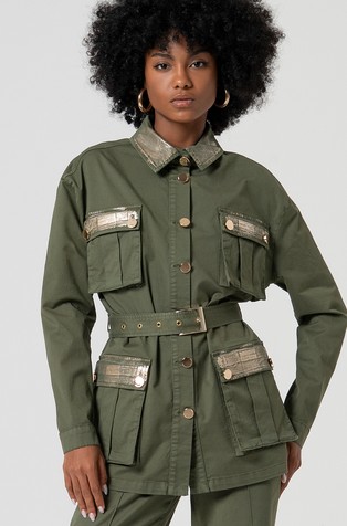 • Gabardine short shirt jacket with jewel buttons