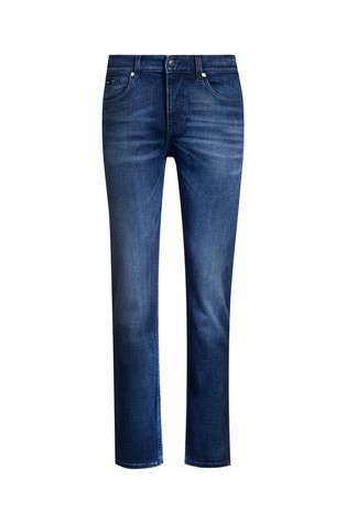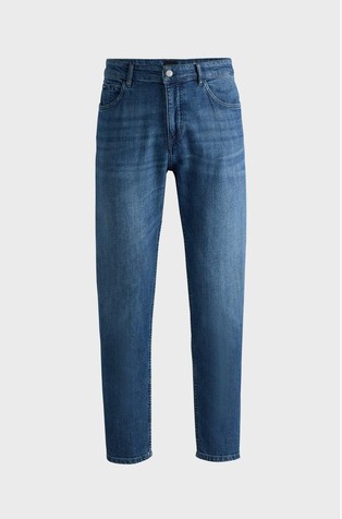 Izuzetno mekane jeans hlače iz kolekcije BOSS uskog su kroja i izrađene od rastezljivog talijanskog denima.