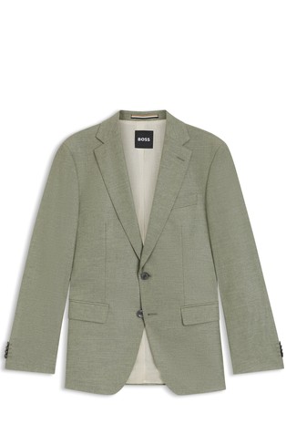 Moderan sako iz kolekcije BOSS izrađen je od prozračne, mrežasto teksturirane tkanine koja se ne gužva, pa se može prati u perilici rublja.