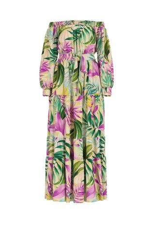 Haljina s uzorkom, V-izrezom i volanima