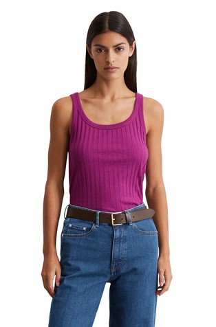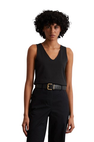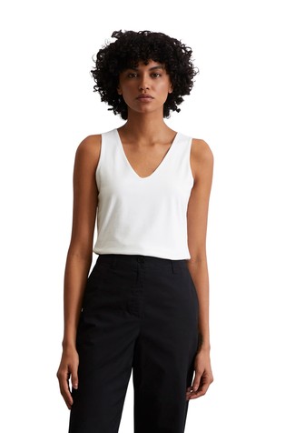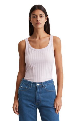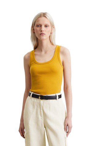 Majica bez rukava izrađena je od visokokvalitetnog laganog jerseya od organskog pamuka koji je mekan i izdržljiv na dodir. Dizajnirana je s uskim krojem i ženstvenim, širokim okruglim izrezom.