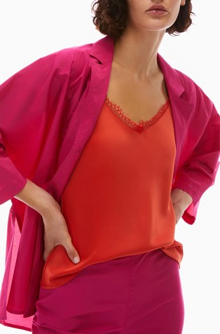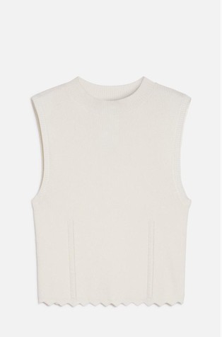 Rebrasto pleten top od mješavine viskoze dizajniran je s V-izrezom na preklop i skraćenom dužinom. Kombinirajte ga s kratkim hlačama s uzorkom za jedinstven ljetni izgled.